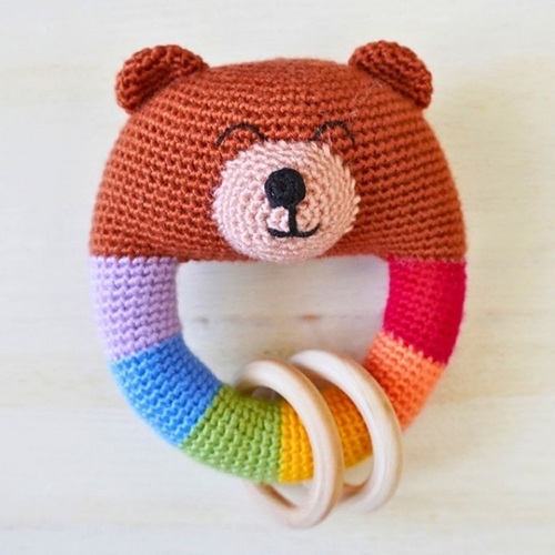 Anna Ushakova offers a beautiful Rainbow baby rattle for gifting pregnant moms or at a baby shower. The project uses beginner level crochet skills.