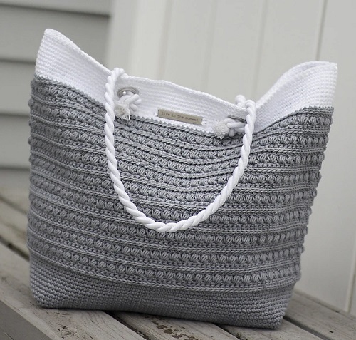 Carry all your essentials with style by making Agats stunning tote bag. To make use of intermediate stitches, work corner to corner to create the shown textured fabric.