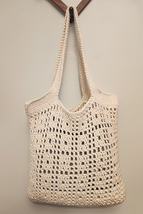 Rachels daisy tote is made of two panels, straps, and then assembled. Check the color, gauge, stitches, and other things used in this.