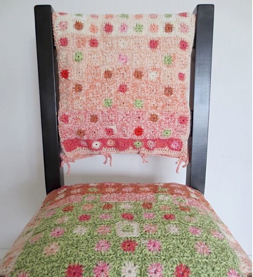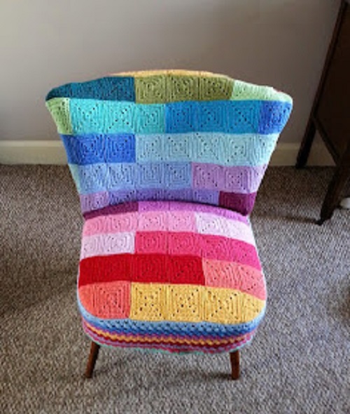 These small granny square covers add a touch of crochet charm to your chairs. Moreover the combination of green and red squares creates a captivating pattern that additionally redefines dining elegance. Moreover, these petite seat covers not only protect your chairs but also create a cozy and inviting atmosphere in your living space. Additionally, they are a quick and delightful crochet project for those looking to enhance their seating with a hint of crochet craftsmanship.11. DIY Crochet Chair Marvels