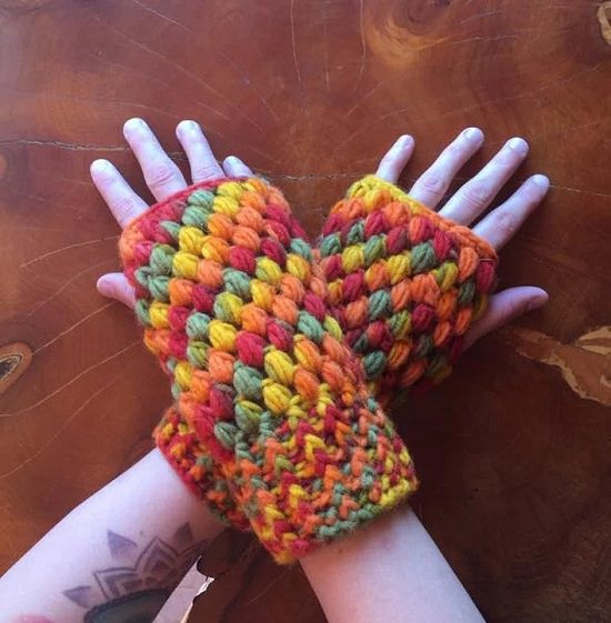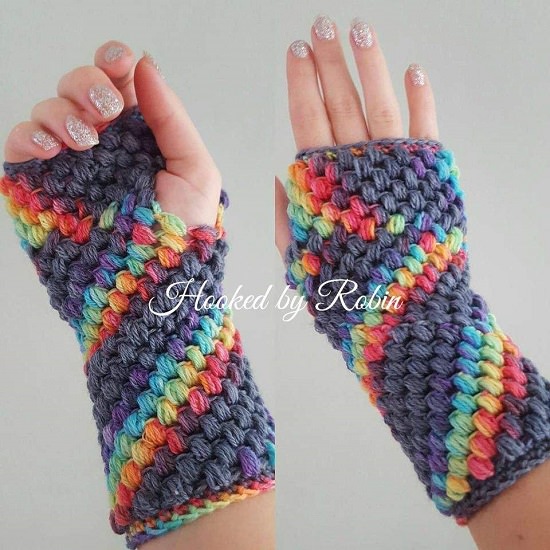 16.‚ Puff Stitch Fingerless Gloves Pattern