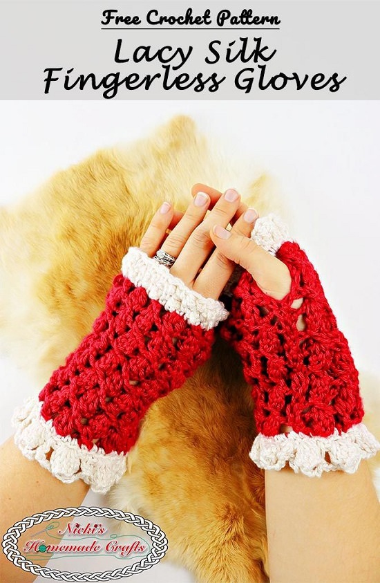 This snuggly gloves are weaved with soft yarns and carved with a butterfly motif. Read this blog from SuziesStuff for further details.