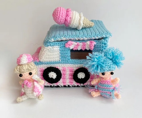 This ice creme truck will surely reward you with sweet treats! Ha! Zhang Huipei made this using beginner to intermediate crochet stitches in different colors!