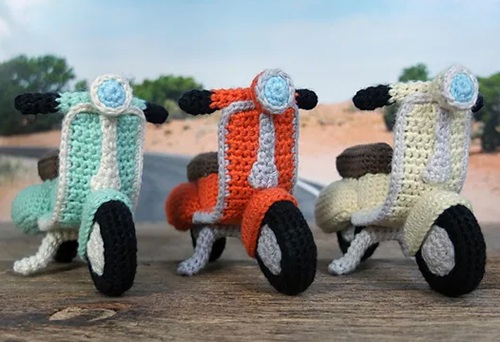 This one is a hard crochet project made with chain stitch, slip stitch, and single crochet! Marie Lize shares the instructions, color guidance, and size of all three vespas in her free tutorial.
