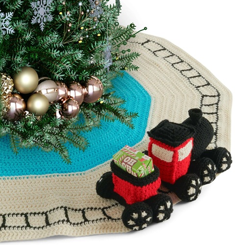 This traditional train with a crocheted tree skirt is good for your child and your holiday home decor! Yarnspirations shares its free pattern!