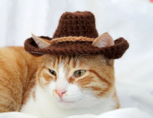 Adorable and quirky, this Cowboy Hat is designed specifically for your feline friend. Crochet a miniature cowboy hat that adds a touch of whimsy to your pets attire.