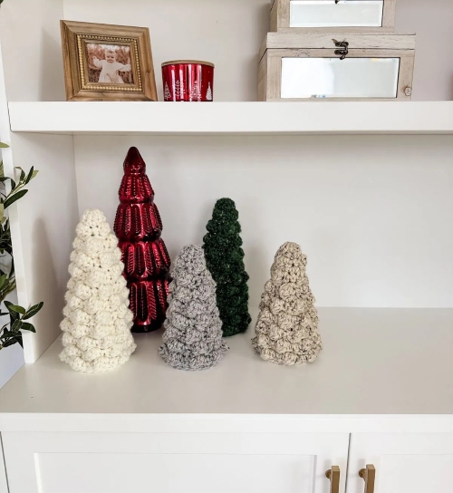 MJs Off The Hook Designs made adorable bobble trees for the holiday season. They used gauge 6 stitches and 6 rows and easy crochet stitches. You can use them any time of the‚ year.