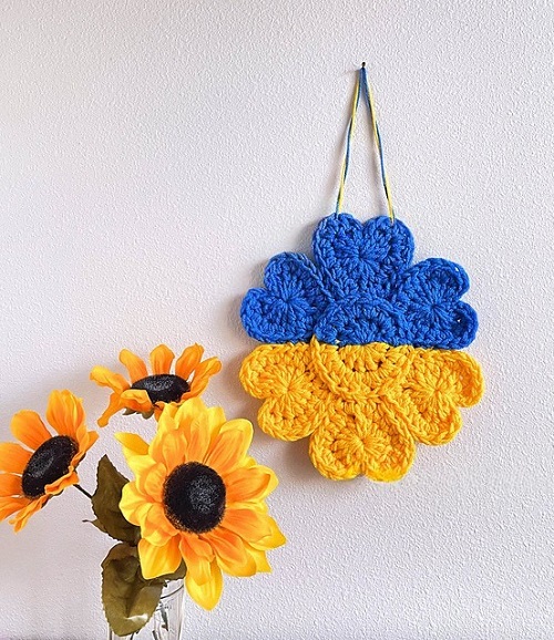 How about this crocheted yellow and blue Ukrainian sunflower? It shows strength, sun, and prosperity, and everyone wanted to welcome these qualities into themselves and their surrounding. DIY now!
