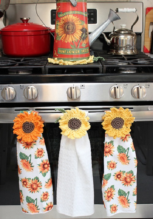 These sunflower towel toppers are pretty and unique. You can have them easily and quickly following Kris Moores free guide.