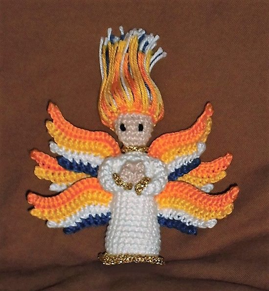 Crocheting this‚ seraph toy‚ using its six wings is fun. The crocheter has designed it the way to give its hair and tail a fiery look.