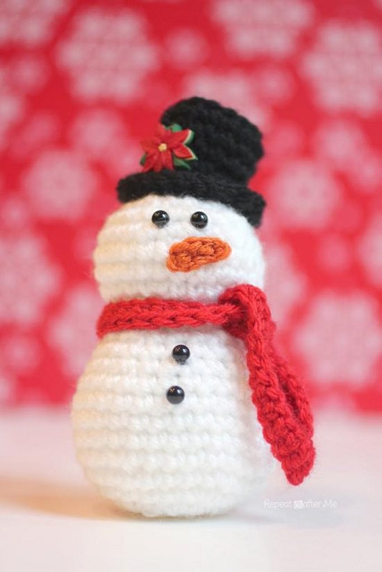 Bring the essence of snowy winter inside by crocheting this lovely snowman using repeat crafter me blog. Its motif is worked in rounds and uses variations of single crochet stitches.