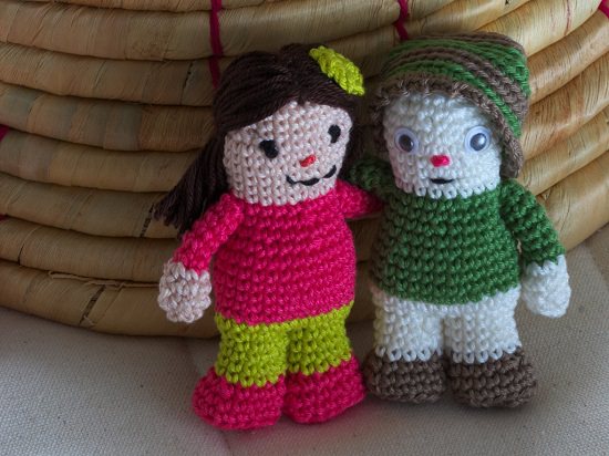 For imitating this craft, pick any three colors, one for the body, one for the skirt, and one more for crocheting hands, feet, muzzle, and ears, and you are good to go!