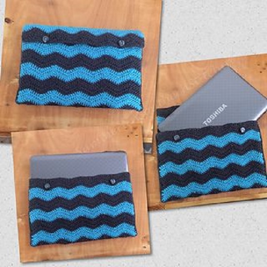 This chevron laptop sleeve features the wavy layout that is worked using two contrast color combination. This pattern is super easy to crochet and is available on Ravelry.