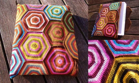 Any crocheter, who is fond of a hexagonal motif, is surely going to appreciate the beauty of this case. The colorful palettes on the hexagonal structure make this sleeve pattern beautiful!