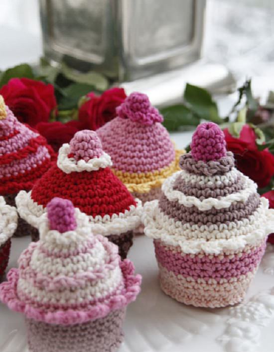 These cupcakes‚ can be an excellent addition to your living room! These are embellished with luscious looking crocheted cherry and cream toppings.