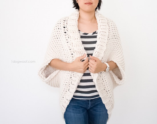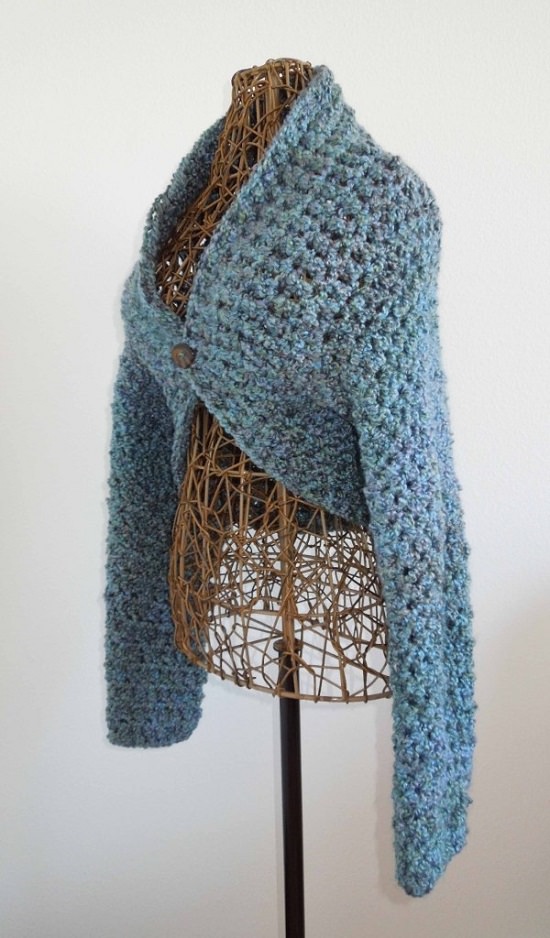 This shrug-style cardigan drape comfortably over the shoulders. Choose‚ lightweight cotton for using it for summers or pick the chunkier wool to beat the freezing air of winters.