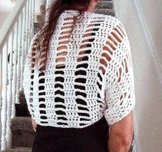 You can pair this graceful shrug‚ with any spaghetti. For getting the same look, dont crochet too tightly, as its fascinating texture calls for a loose stitch.