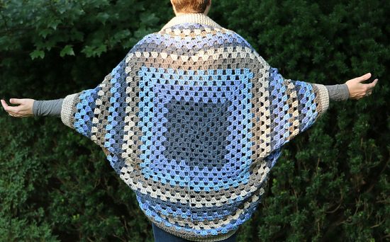 This shrug, with a hint of granny squares, is‚ a fun way to play with your own colors! Customize it further as per your own taste!