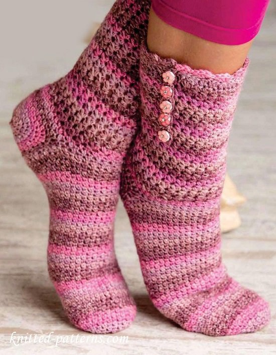 Revamp the look of your feet with the addition of these graceful slipper socks that can be paired with a matching mitten or cowl. You can even‚ add some anti-skid bottom to them.