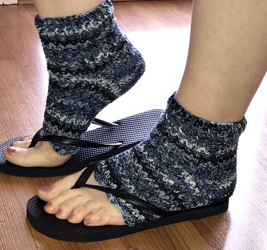 Any woman who does her daily chores while wearing slippers will find these flip flop Pedi socks‚ pattern useful. They can be easily worn underneath the slippers.