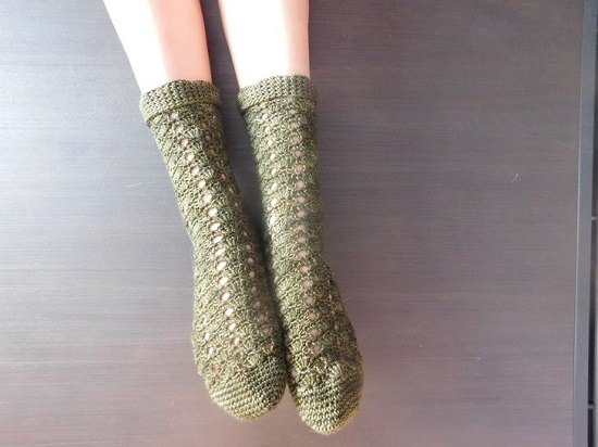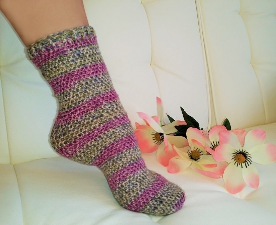 If the over bulky and thick textured patterns discomfort you, these elegant pair of socks, with an airy texture, is going to do the trick for you.‚ This is one of the best‚ DIY Crochet Socks patterns on the list!