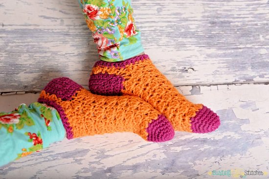 Simple but unique stitches engaged for crocheting these socks pairs make them stand out from the crowd. Head on to this tutorial from Marnie Maclean for imitating this pattern. This is one of the best‚ DIY Crochet Socks patterns on the list!