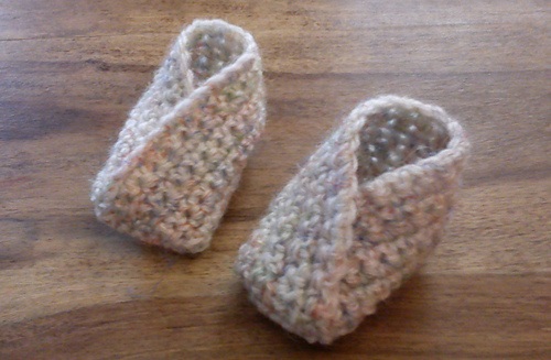 With DK yarn, these crossover booties use only a single crochet stitch in a T shape pattern. Grab its free pattern on Ravelry.
