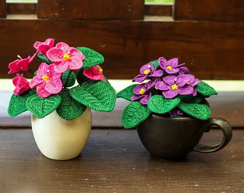 Those who love the beautiful African violets must consider their crocheted versions that look pretty similar to the real ones. The best part? They will last forever without any maintenance.