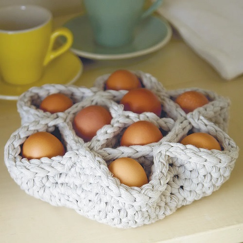 Channel the rigidity and sturdiness of this basket by storing your eggs and organizing them in your kitchen space. The pattern is by easycraftspatterns.