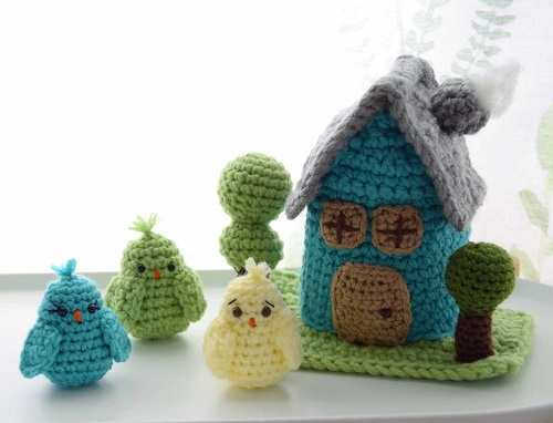 This little birdhouse with a sweet birdie set ‚ is needed to celebrate the spring season! The pattern also contains crocheting details for grass, mat, and trees. It was uploaded by Lorene Eppolite!