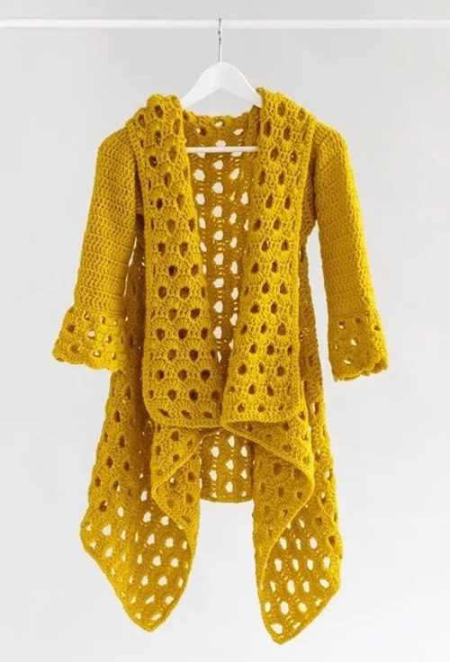 These are essentially the creative versions of cardigans crocheted by talented crafters, combining bell sleeves and other stylish techniques to create eye-popping layering garments for you. TRY!