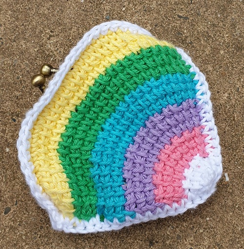 Vicky Stadens creation! This adorable rainbow seashell purse can be easily created using bits of scrap yarn with Tunisian crochet. It is 12 cm long. You should also view these